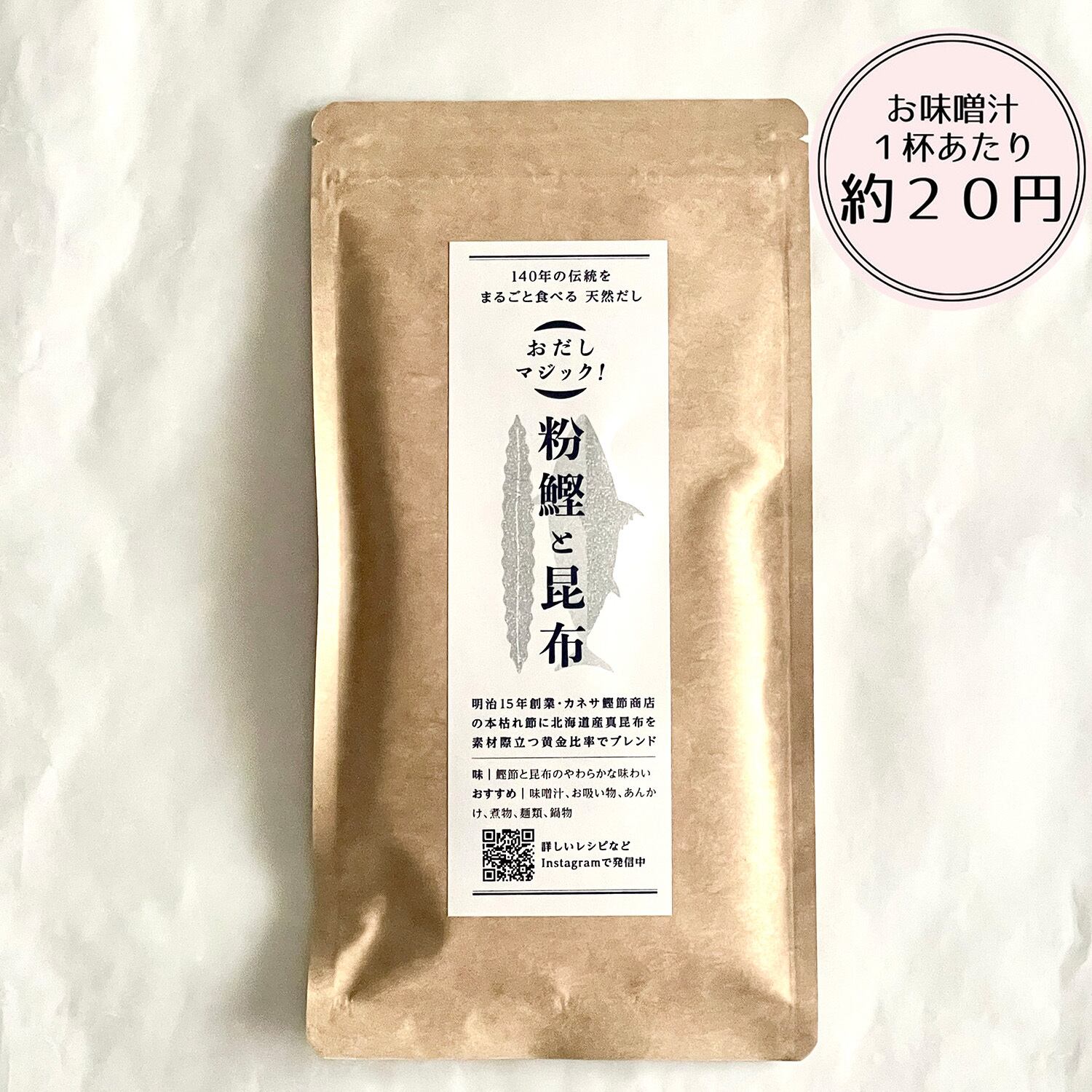 旨味たっぷりの粉鰹と昆布はそのまま具材として、豊富な鰹節や昆布の栄養も丸ごとお摂りいただける、身体によくてちゃんとおいしい食品です。